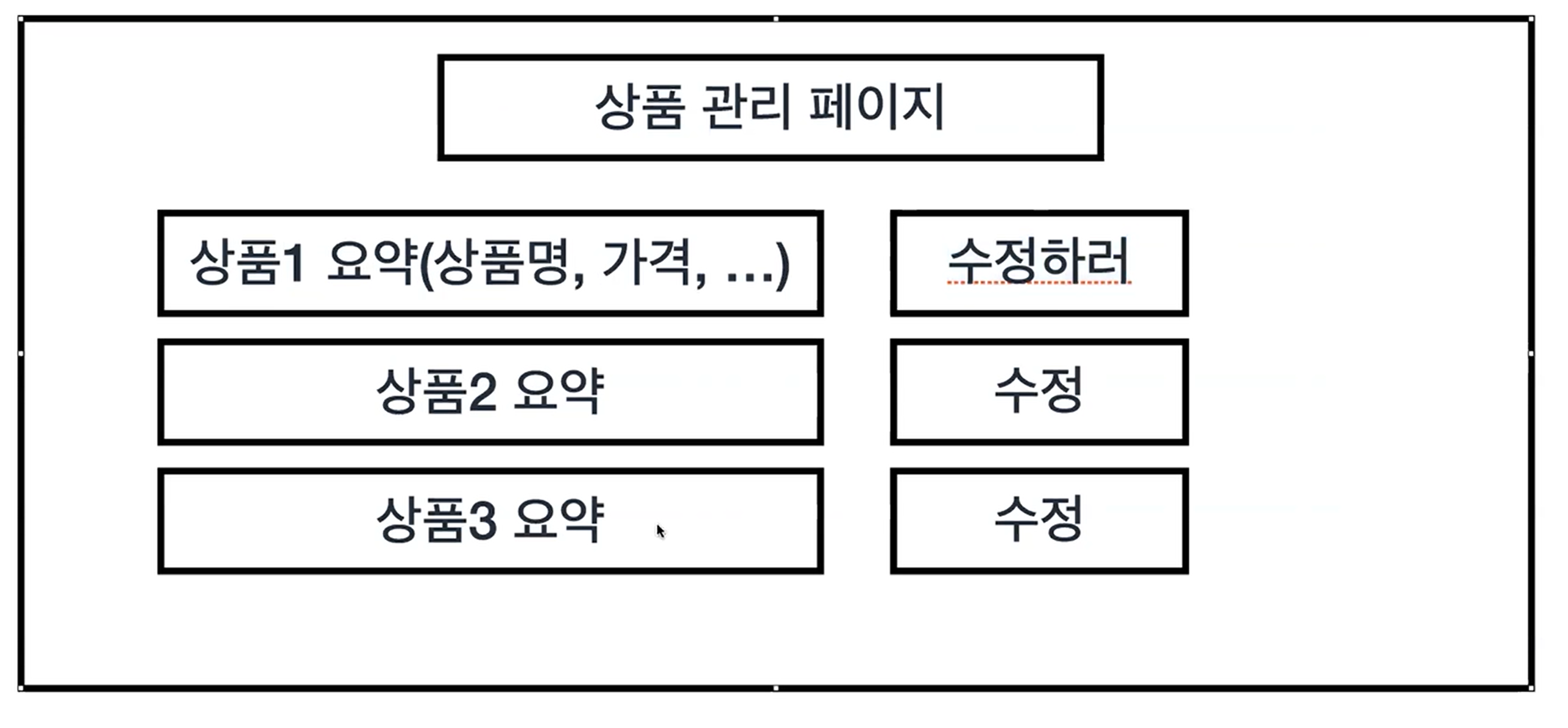 상품 상세 페이지 틀 -> 상품1 개별 조회 API -> 데이터를 받아서 -> 틀에 맞게 뿌려준다.