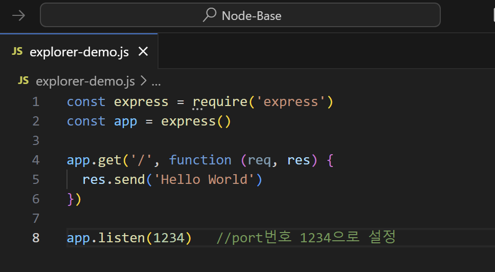 설치 후 explorer-demo.js파일을 만들고 다음과 같이 입력한다.