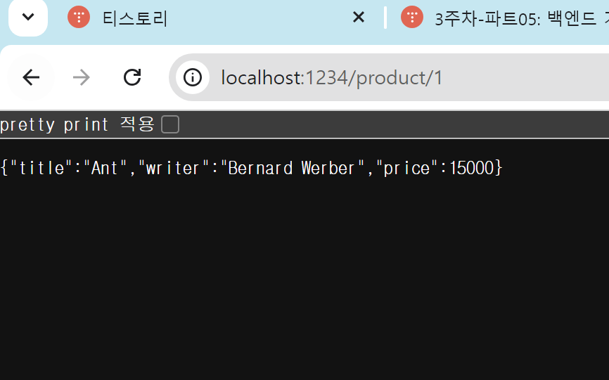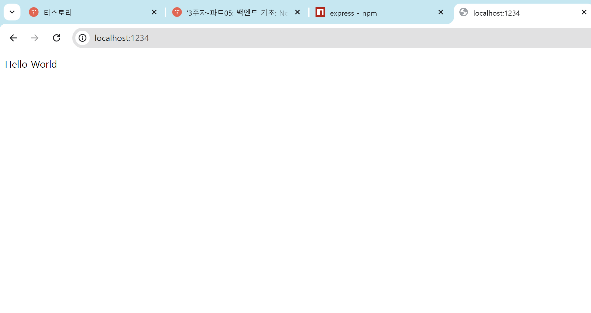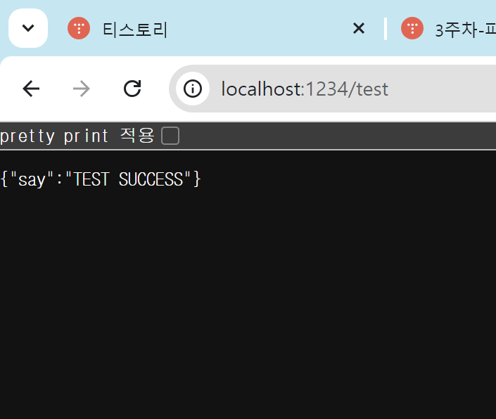 코드 실행 후 url 창에 localhost:1234를 치면 잘 돌아가는 걸 확인할 수 있다.