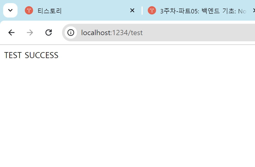 다음 코드를 추가해보자. url창에 localhost:1234/test를 입력하면 다음 코드의 결과를 볼 수 있다.