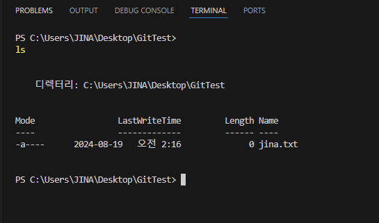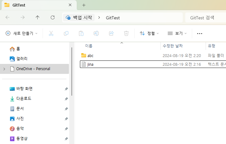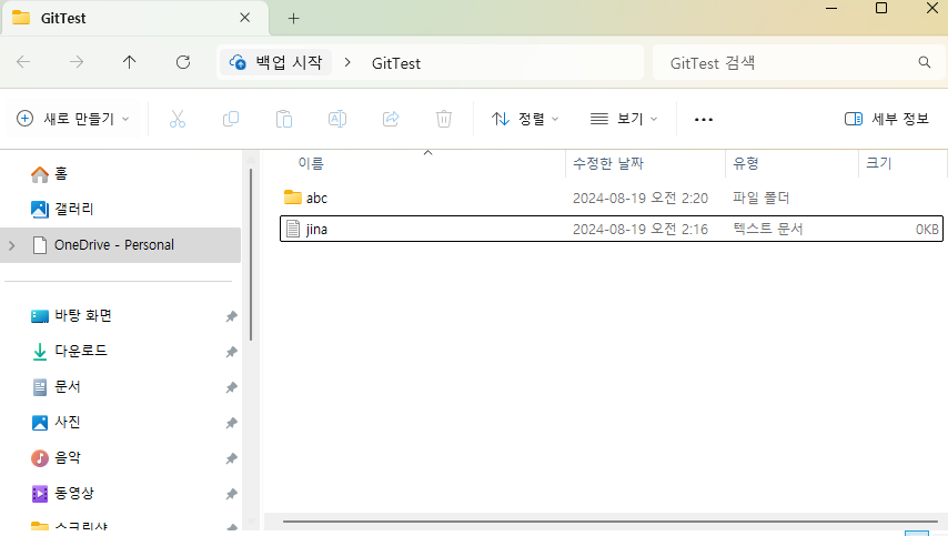 이번에는 폴더 안에 jina.txt파일을 하나 생성해보자.