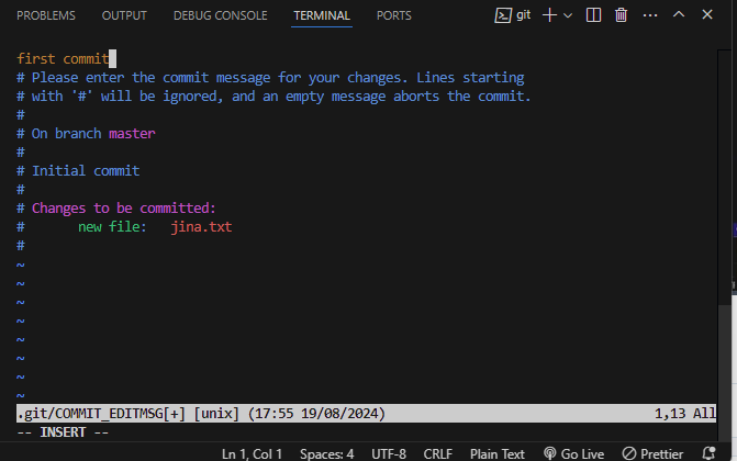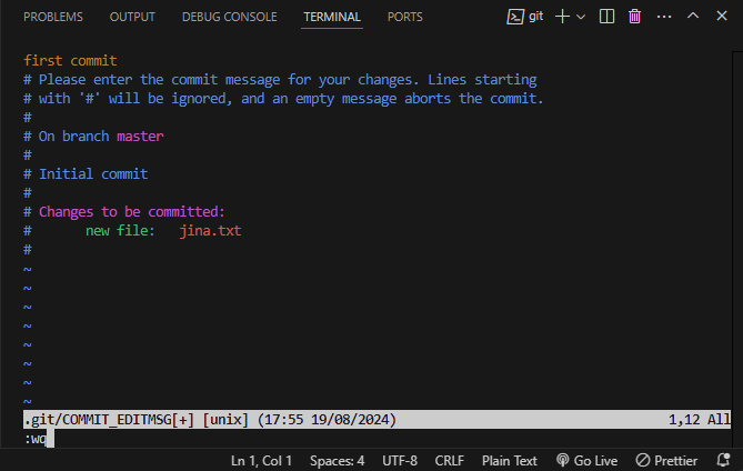 이제 터미널에 "git commit" 명령어를 입력해보자. 다음과 같은 화면이 뜬다.