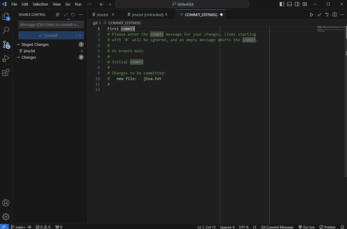 이제 commit 버튼을 누르면 나오는 창에 First commit이라는 커밋 메시지를 입력해주고