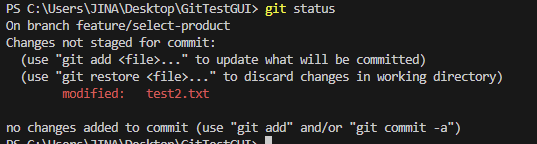 커밋을 했으니 확인을 위해 다시 feature/select-product 브랜치로 이동해보자.