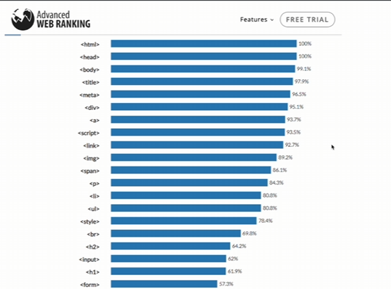 Advanced WEB RANKING웹사이트에서 자주 쓰이는 html태그 순위를 볼 수 있다.
