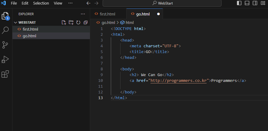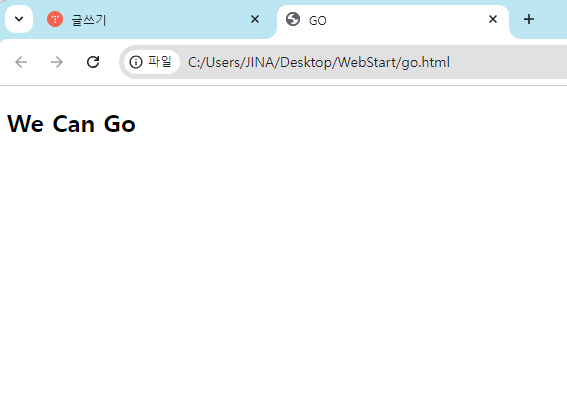 새로운 go.html파일을 만들고 그 안에 기본양식 틀을 복사해준 뒤 title의 이름을 "Go"로 바꾸었다.
