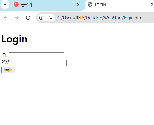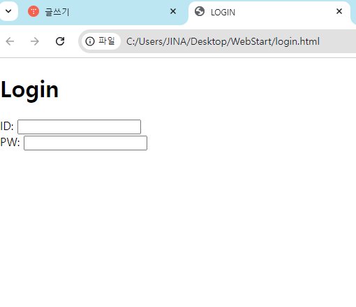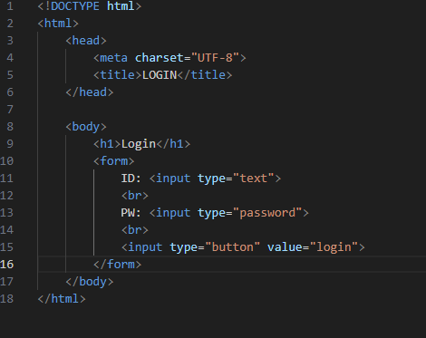 이제 로그인 페이지를 만들어보자. 로그인 페이지를 만들 login.html파일을 만들고 아래와 같이 코드를 친다.