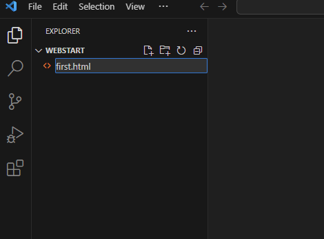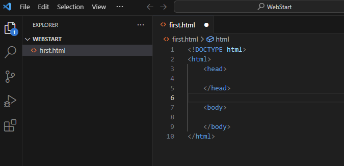 VS code에서 html파일을 만드는 실습을 해보자. 새로운 폴더 WebStart을 만들어 그 안에 html파일을 만들어주었다.